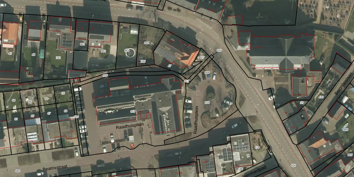 Raadhuisplein 4 is gelegen op kadastraal perceel MLO02G919. Deze kadastrale aanduiding is uniek en wordt gebruikt door het Kadaster om eigendomsrechten en andere zakelijke rechten vast te leggen. Het perceel maakt onderdeel uit van de kadastrale gemeente Meerlo.