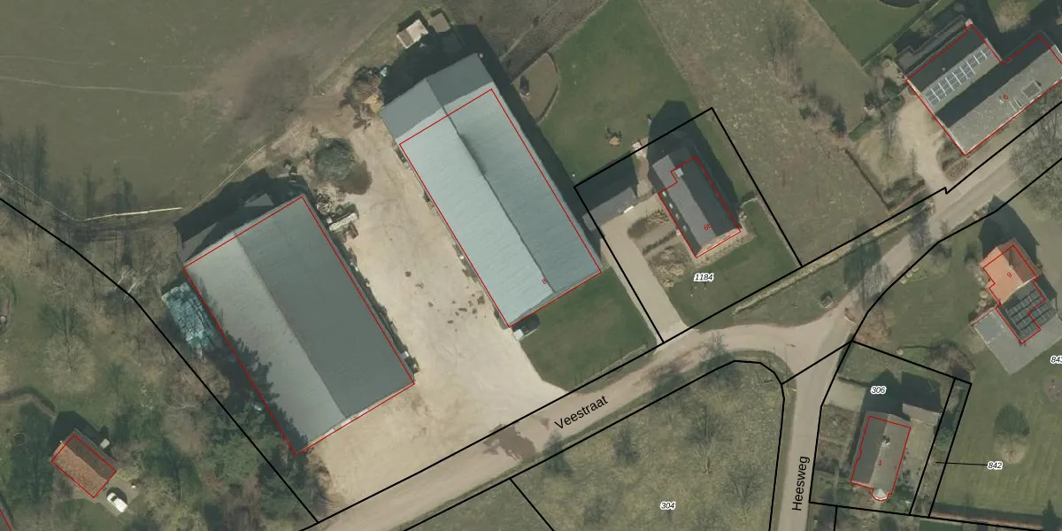 Het perceel waarop Veestraat 8 staat heeft een oppervlakte van 5,3 ha. Dit is een zeer groot perceel. De perceeloppervlakte wordt geregistreerd door het Kadaster. Gedetailleerde informatie over de maten van dit perceel kunt u vinden in het rapport Kadastrale kaart met maatvoering van Veestraat 8.