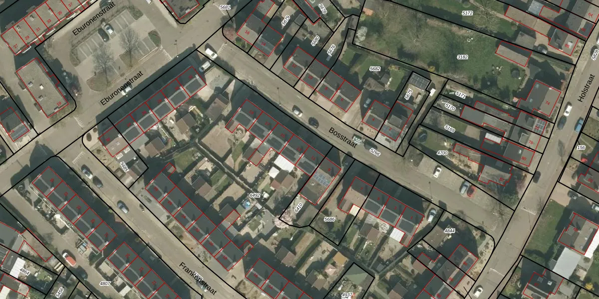Bosstraat 13 is gelegen op kadastraal perceel MSN01B6492. Deze kadastrale aanduiding is uniek en wordt gebruikt door het Kadaster om eigendomsrechten en andere zakelijke rechten vast te leggen. Het perceel maakt onderdeel uit van de kadastrale gemeente Meerssen.