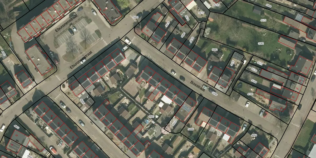 Het perceel waarop Bosstraat 17 staat heeft een oppervlakte van 5726 m². Dit is een zeer groot perceel. De perceeloppervlakte wordt geregistreerd door het Kadaster. Gedetailleerde informatie over de maten van dit perceel kunt u vinden in het rapport Kadastrale kaart met maatvoering van Bosstraat 17.