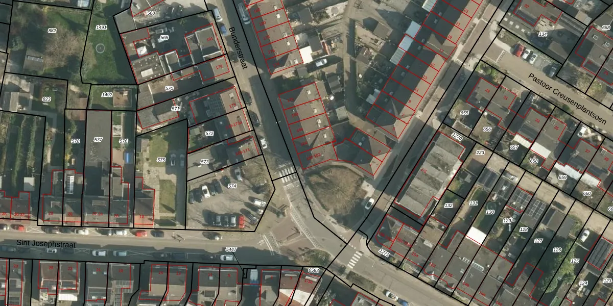 Het perceel waarop Bunderstraat 162 staat heeft een oppervlakte van 9525 m². Dit is een zeer groot perceel. De perceeloppervlakte wordt geregistreerd door het Kadaster. Gedetailleerde informatie over de maten van dit perceel kunt u vinden in het rapport Kadastrale kaart met maatvoering van Bunderstraat 162.