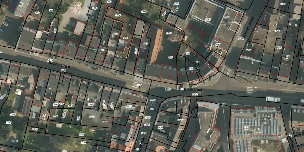 Het perceel waarop Bunderstraat 2 staat heeft een oppervlakte van 1208 m². Dit is een zeer groot perceel. De perceeloppervlakte wordt geregistreerd door het Kadaster. Gedetailleerde informatie over de maten van dit perceel kunt u vinden in het rapport Kadastrale kaart met maatvoering van Bunderstraat 2.