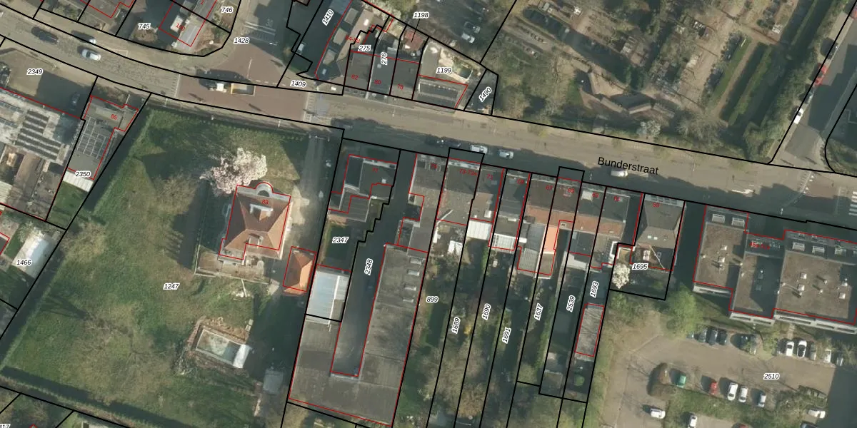 Het perceel waarop Bunderstraat 75-c staat heeft een oppervlakte van 1152 m². Dit is een zeer groot perceel. De perceeloppervlakte wordt geregistreerd door het Kadaster. Gedetailleerde informatie over de maten van dit perceel kunt u vinden in het rapport Kadastrale kaart met maatvoering van Bunderstraat 75-c.