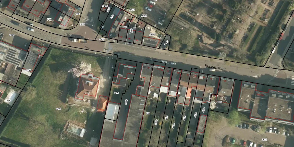 Het perceel waarop Bunderstraat 75-a staat heeft een oppervlakte van 1152 m². Dit is een zeer groot perceel. De perceeloppervlakte wordt geregistreerd door het Kadaster. Gedetailleerde informatie over de maten van dit perceel kunt u vinden in het rapport Kadastrale kaart met maatvoering van Bunderstraat 75-a.