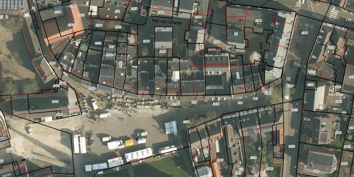 Het perceel waarop Markt 16-a staat heeft een oppervlakte van 155 m². Dit is een middelgroot perceel. De perceeloppervlakte wordt geregistreerd door het Kadaster. Gedetailleerde informatie over de maten van dit perceel kunt u vinden in het rapport Kadastrale kaart met maatvoering van Markt 16-a.