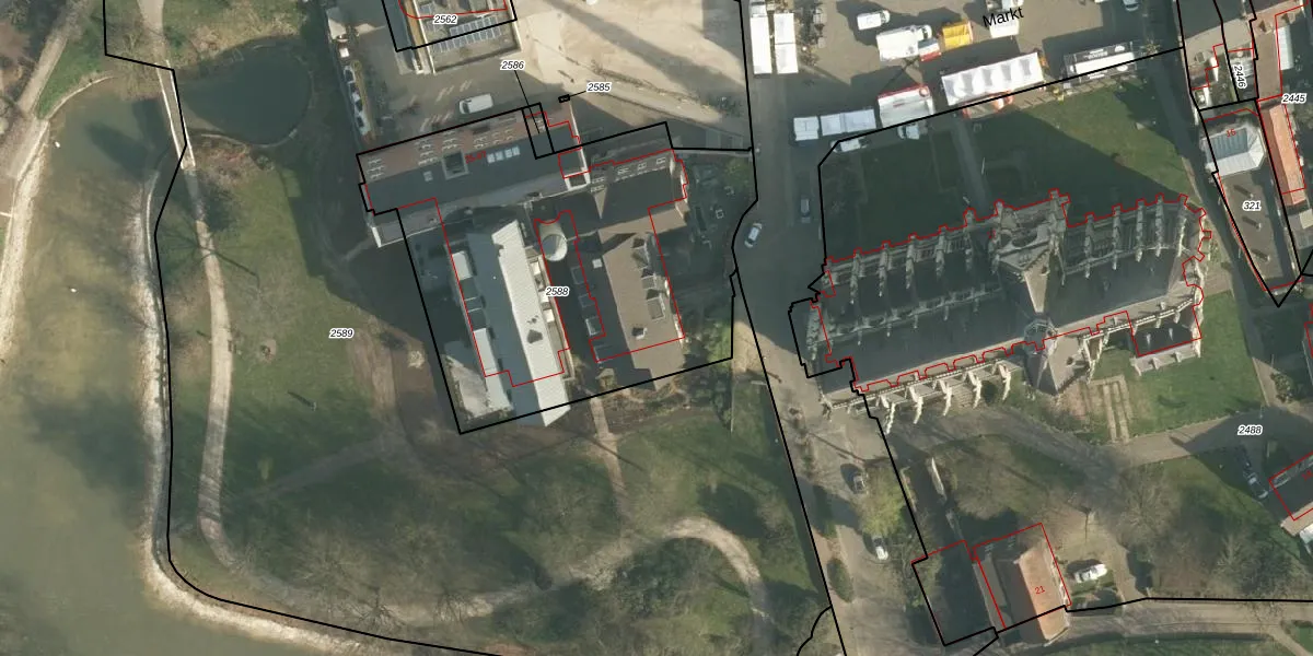Het perceel waarop Markt 25 staat heeft een oppervlakte van 2005 m². Dit is een zeer groot perceel. De perceeloppervlakte wordt geregistreerd door het Kadaster. Gedetailleerde informatie over de maten van dit perceel kunt u vinden in het rapport Kadastrale kaart met maatvoering van Markt 25.