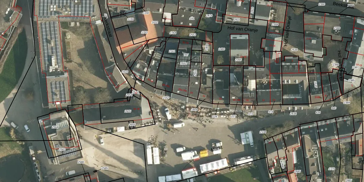 Het perceel waarop Markt 26 staat heeft een oppervlakte van 255 m². Dit is een middelgroot perceel. De perceeloppervlakte wordt geregistreerd door het Kadaster. Gedetailleerde informatie over de maten van dit perceel kunt u vinden in het rapport Kadastrale kaart met maatvoering van Markt 26.