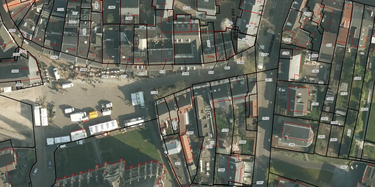 Het perceel waarop Markt 7 staat heeft een oppervlakte van 412 m². Dit is een groot perceel. De perceeloppervlakte wordt geregistreerd door het Kadaster. Gedetailleerde informatie over de maten van dit perceel kunt u vinden in het rapport Kadastrale kaart met maatvoering van Markt 7.