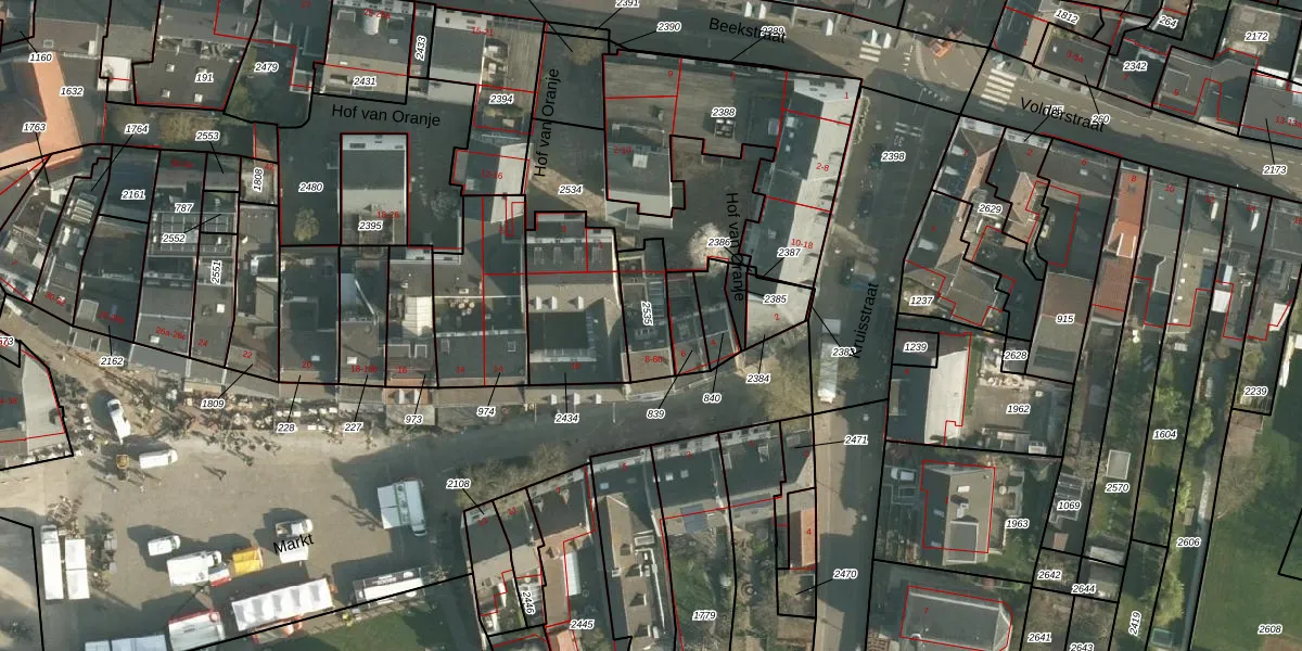 Het perceel waarop Markt 8-a staat heeft een oppervlakte van 145 m². Dit is een middelgroot perceel. De perceeloppervlakte wordt geregistreerd door het Kadaster. Gedetailleerde informatie over de maten van dit perceel kunt u vinden in het rapport Kadastrale kaart met maatvoering van Markt 8-a.