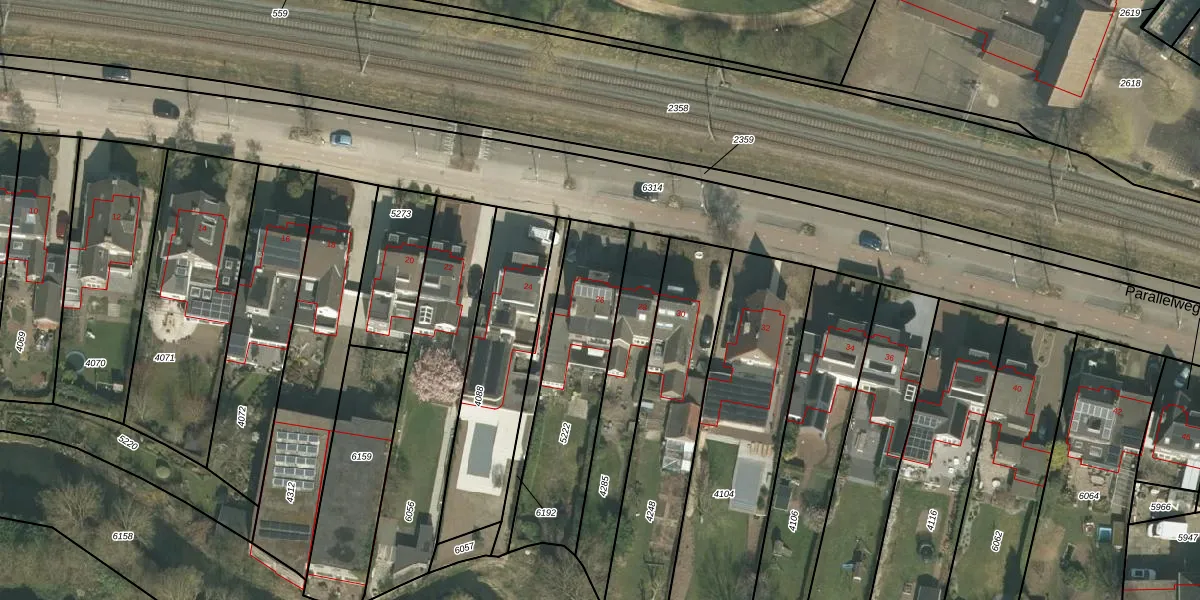 Parallelweg 26 is gelegen op kadastraal perceel MSN01B5222. Deze kadastrale aanduiding is uniek en wordt gebruikt door het Kadaster om eigendomsrechten en andere zakelijke rechten vast te leggen. Het perceel maakt onderdeel uit van de kadastrale gemeente Meerssen.