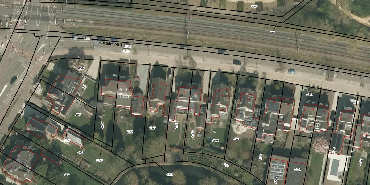 Het perceel waarop Parallelweg 8 staat heeft een oppervlakte van 507 m². Dit is een groot perceel. De perceeloppervlakte wordt geregistreerd door het Kadaster. Gedetailleerde informatie over de maten van dit perceel kunt u vinden in het rapport Kadastrale kaart met maatvoering van Parallelweg 8.