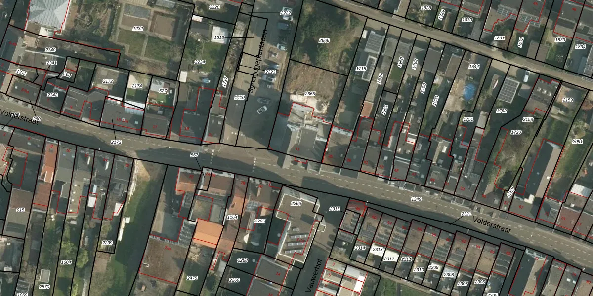 Het perceel waarop Volderstraat 31-b staat heeft een oppervlakte van 595 m². Dit is een groot perceel. De perceeloppervlakte wordt geregistreerd door het Kadaster. Gedetailleerde informatie over de maten van dit perceel kunt u vinden in het rapport Kadastrale kaart met maatvoering van Volderstraat 31-b.