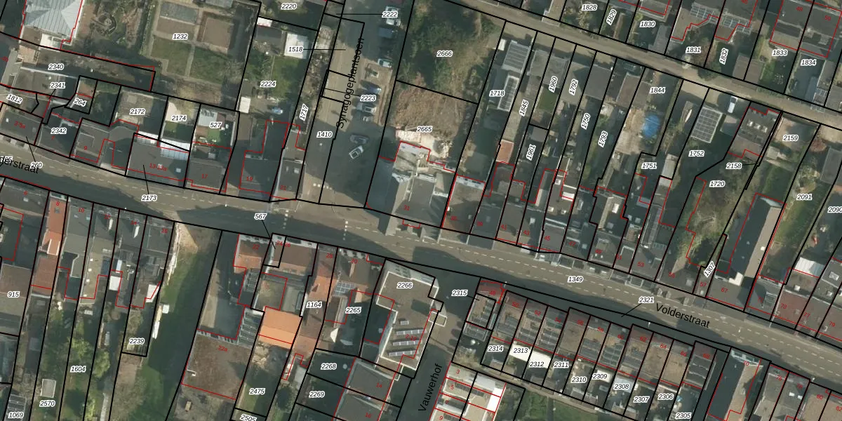 Het perceel waarop Volderstraat 31-d staat heeft een oppervlakte van 595 m². Dit is een groot perceel. De perceeloppervlakte wordt geregistreerd door het Kadaster. Gedetailleerde informatie over de maten van dit perceel kunt u vinden in het rapport Kadastrale kaart met maatvoering van Volderstraat 31-d.