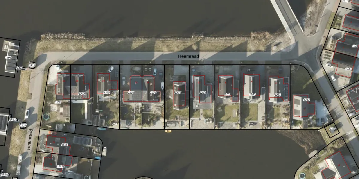Het perceel waarop Heemraad 12 staat heeft een oppervlakte van 506 m². Dit is een groot perceel. De perceeloppervlakte wordt geregistreerd door het Kadaster. Gedetailleerde informatie over de maten van dit perceel kunt u vinden in het rapport Kadastrale kaart met maatvoering van Heemraad 12.
