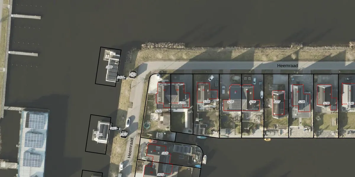 Het perceel waarop Heemraad 20 staat heeft een oppervlakte van 418 m². Dit is een groot perceel. De perceeloppervlakte wordt geregistreerd door het Kadaster. Gedetailleerde informatie over de maten van dit perceel kunt u vinden in het rapport Kadastrale kaart met maatvoering van Heemraad 20.
