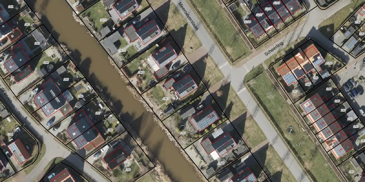 Meeroeverslaan 213 is gelegen op kadastraal perceel GNG01AE1467. Deze kadastrale aanduiding is uniek en wordt gebruikt door het Kadaster om eigendomsrechten en andere zakelijke rechten vast te leggen. Het perceel maakt onderdeel uit van de kadastrale gemeente Groningen.