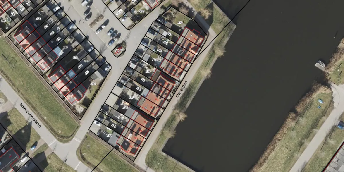 Oeverpad 355 is gelegen op kadastraal perceel GNG01AE438. Deze kadastrale aanduiding is uniek en wordt gebruikt door het Kadaster om eigendomsrechten en andere zakelijke rechten vast te leggen. Het perceel maakt onderdeel uit van de kadastrale gemeente Groningen.
