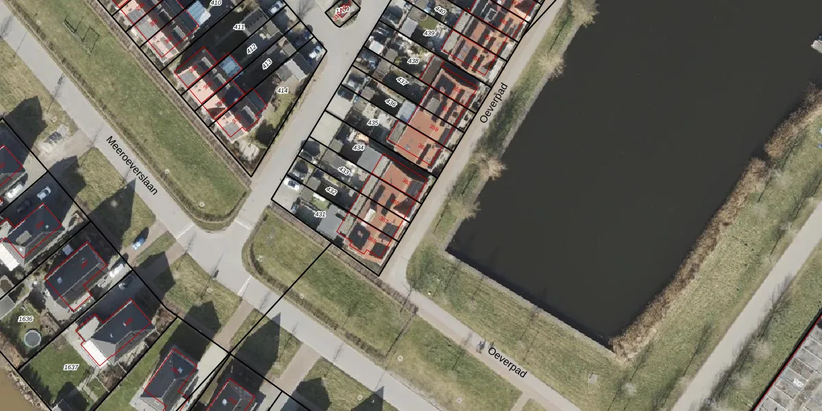 Oeverpad 365 is gelegen op kadastraal perceel GNG01AE433. Deze kadastrale aanduiding is uniek en wordt gebruikt door het Kadaster om eigendomsrechten en andere zakelijke rechten vast te leggen. Het perceel maakt onderdeel uit van de kadastrale gemeente Groningen.