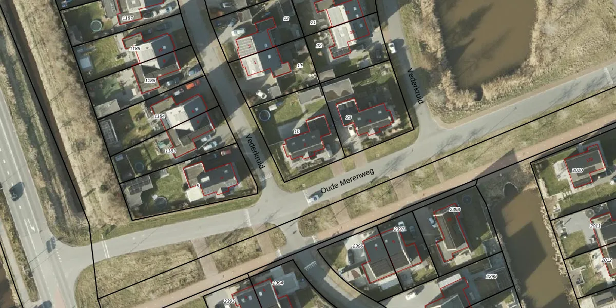 Het perceel waarop Oude Merenweg 2 staat heeft een oppervlakte van 596 m². Dit is een groot perceel. De perceeloppervlakte wordt geregistreerd door het Kadaster. Gedetailleerde informatie over de maten van dit perceel kunt u vinden in het rapport Kadastrale kaart met maatvoering van Oude Merenweg 2.