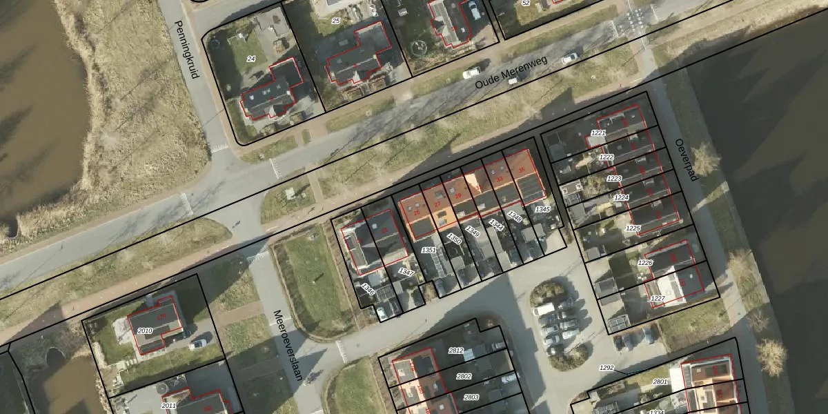 Oude Merenweg 25 is gelegen op kadastraal perceel GNG01AE1351. Deze kadastrale aanduiding is uniek en wordt gebruikt door het Kadaster om eigendomsrechten en andere zakelijke rechten vast te leggen. Het perceel maakt onderdeel uit van de kadastrale gemeente Groningen.