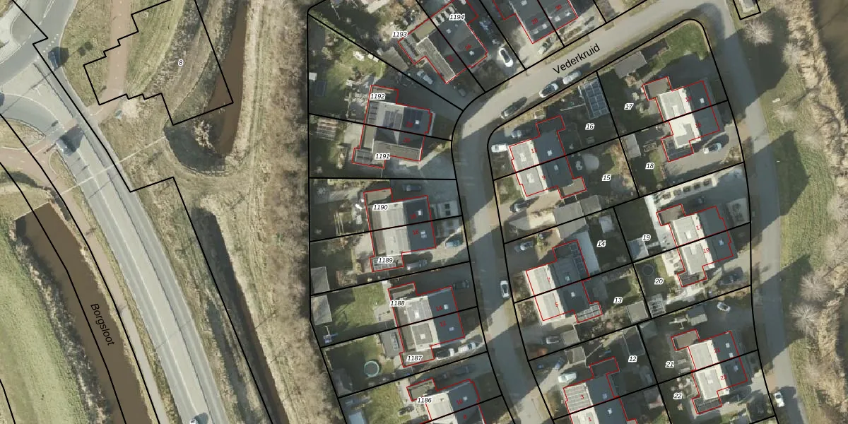 Vederkruid 18 is gelegen op kadastraal perceel GNG01AE1190. Deze kadastrale aanduiding is uniek en wordt gebruikt door het Kadaster om eigendomsrechten en andere zakelijke rechten vast te leggen. Het perceel maakt onderdeel uit van de kadastrale gemeente Groningen.