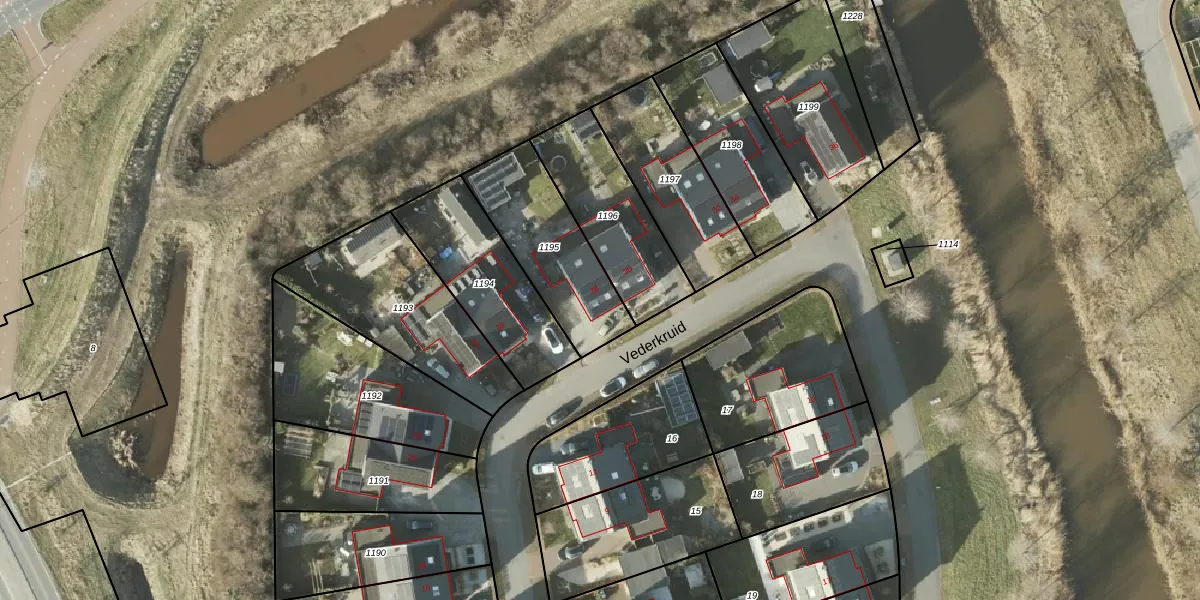 Het perceel waarop Vederkruid 28 staat heeft een oppervlakte van 424 m². Dit is een groot perceel. De perceeloppervlakte wordt geregistreerd door het Kadaster. Gedetailleerde informatie over de maten van dit perceel kunt u vinden in het rapport Kadastrale kaart met maatvoering van Vederkruid 28.