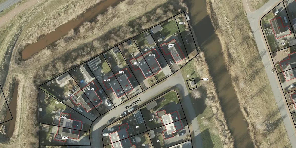 Het perceel waarop Vederkruid 32 staat heeft een oppervlakte van 409 m². Dit is een groot perceel. De perceeloppervlakte wordt geregistreerd door het Kadaster. Gedetailleerde informatie over de maten van dit perceel kunt u vinden in het rapport Kadastrale kaart met maatvoering van Vederkruid 32.