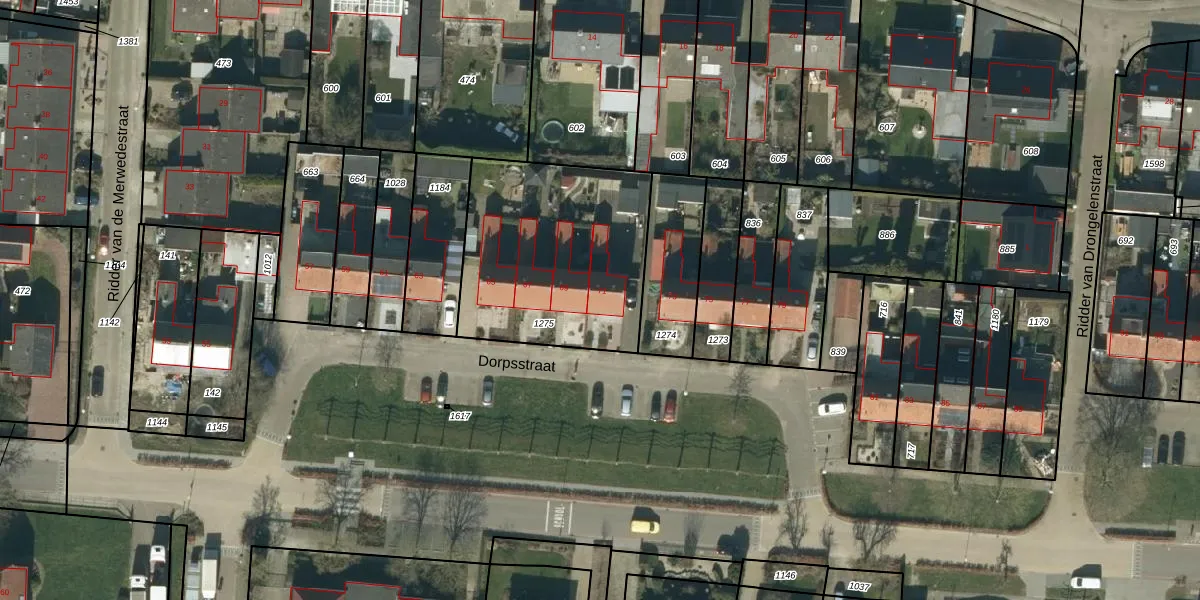Het perceel waarop Dorpsstraat 71 staat heeft een oppervlakte van 909 m². Dit is een groot perceel. De perceeloppervlakte wordt geregistreerd door het Kadaster. Gedetailleerde informatie over de maten van dit perceel kunt u vinden in het rapport Kadastrale kaart met maatvoering van Dorpsstraat 71.