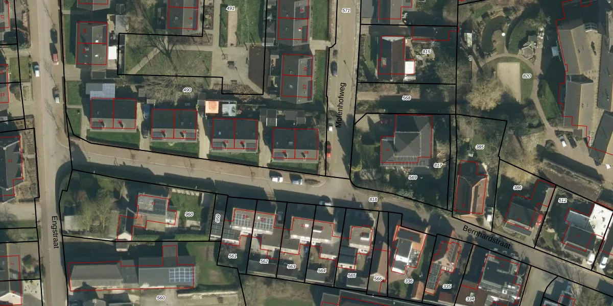 Bernhardstraat 18 is gelegen op kadastraal perceel MGN02F490. Deze kadastrale aanduiding is uniek en wordt gebruikt door het Kadaster om eigendomsrechten en andere zakelijke rechten vast te leggen. Het perceel maakt onderdeel uit van de kadastrale gemeente Megen.