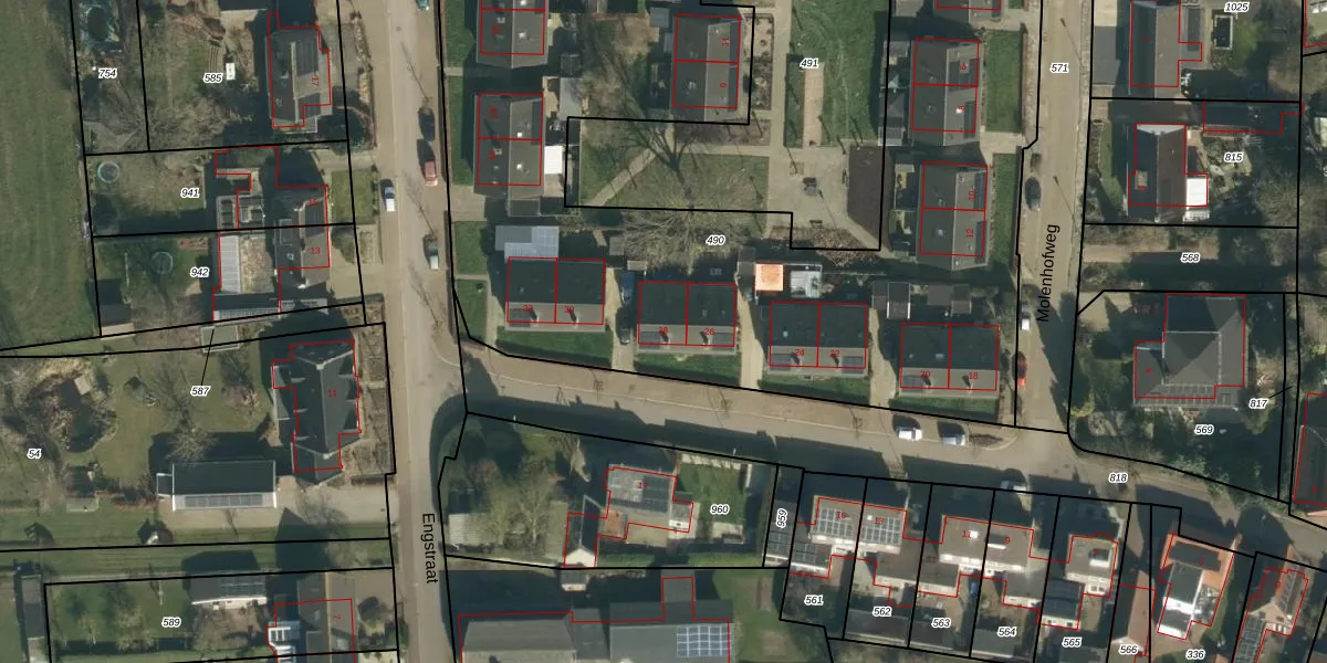 Het perceel waarop het adres ligt is MGN02-F-490. De afkorting 'MGN02' staat voor kadastrale gemeente Megen. Het perceel is met 5230 m² relatief groot. Het gemiddelde ligt in de kadastrale gemeente Megen op 1029,97 m². Het grootste perceel in de kadastrale gemeente is 4,6 ha. Het kleinste perceel heeft een oppervlakte van 2 m². Op het perceel liggen in totaal 24 adressen. De huidige grenzen van het perceel zijn digitaal in de Basisregistratie Kadaster (BRK) geregistreerd op 09-07-2009.