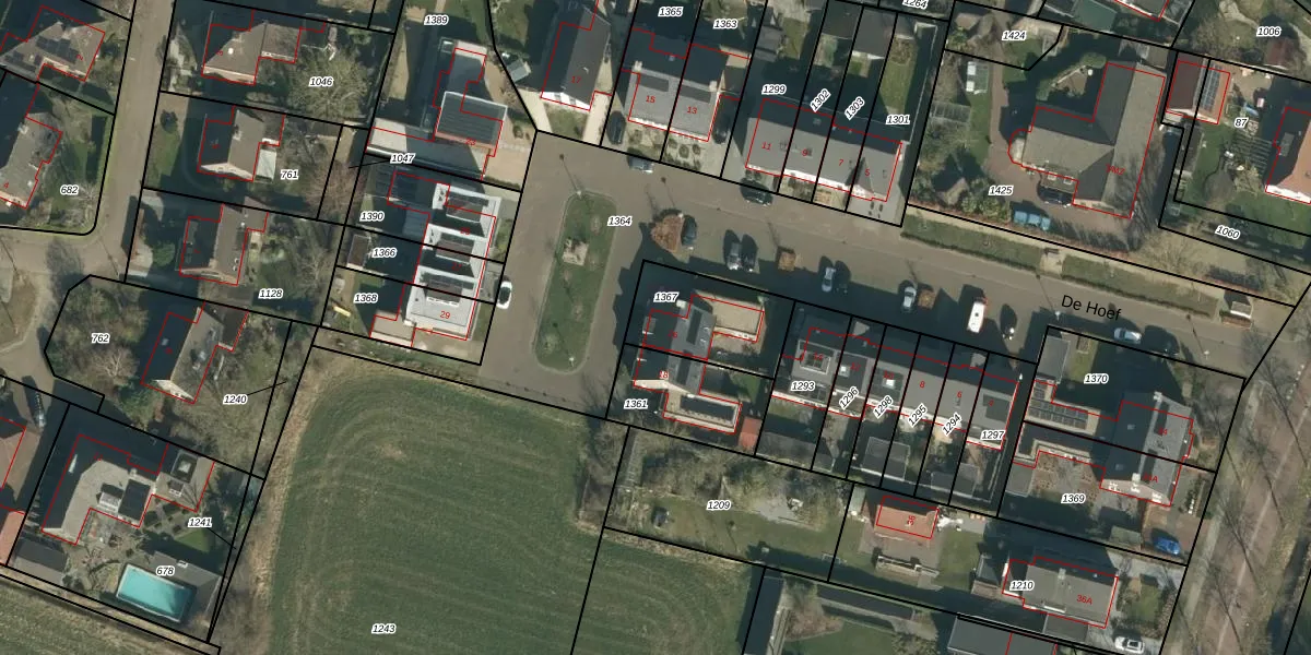 Het perceel waarop De Hoef 16 staat heeft een oppervlakte van 304 m². Dit is een groot perceel. De perceeloppervlakte wordt geregistreerd door het Kadaster. Gedetailleerde informatie over de maten van dit perceel kunt u vinden in het rapport Kadastrale kaart met maatvoering van De Hoef 16.