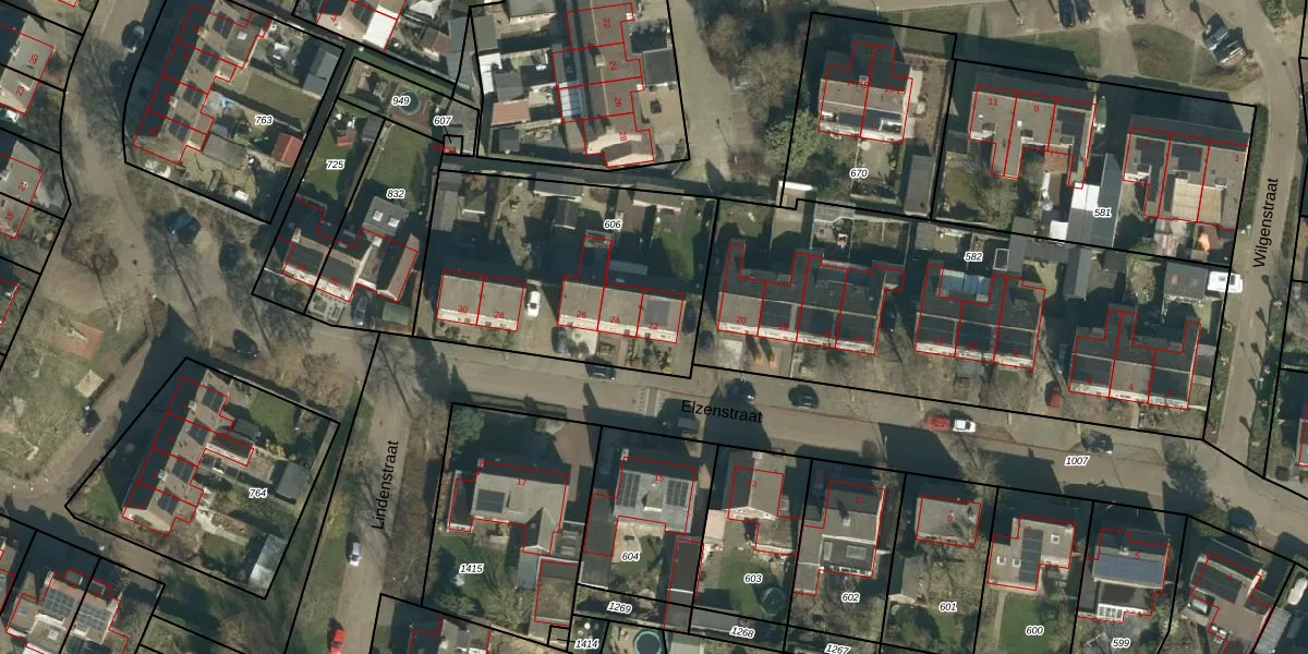 Het perceel waarop Elzenstraat 22 staat heeft een oppervlakte van 1151 m². Dit is een zeer groot perceel. De perceeloppervlakte wordt geregistreerd door het Kadaster. Gedetailleerde informatie over de maten van dit perceel kunt u vinden in het rapport Kadastrale kaart met maatvoering van Elzenstraat 22.