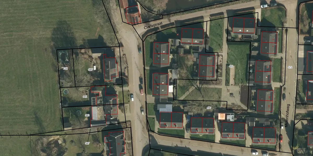 Het adres is gelegen op perceel 490 in de sectie F en de kadastrale gemeente Megen. De kadastrale aanduiding is aldus MGN02-F-490. Het perceel is met 5230 m² relatief groot. Het gemiddelde ligt in de kadastrale gemeente Megen op 1029,97 m². Het grootste perceel in de kadastrale gemeente is 4,6 ha. Het kleinste perceel heeft een oppervlakte van 2 m². Op het perceel zijn 24 adressen aanwezig. De huidige grenzen van het perceel zijn digitaal in de Basisregistratie Kadaster (BRK) geregistreerd op 09-07-2009.