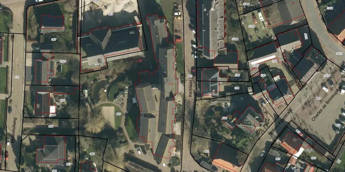 Kerklaan 1 is gelegen op kadastraal perceel MGN02F820. Deze kadastrale aanduiding is uniek en wordt gebruikt door het Kadaster om eigendomsrechten en andere zakelijke rechten vast te leggen. Het perceel maakt onderdeel uit van de kadastrale gemeente Megen.