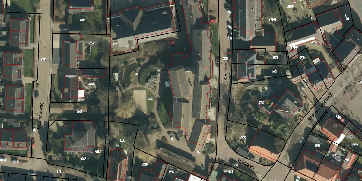 Het perceel waarop Kerklaan 29-A staat heeft een oppervlakte van 4771 m². Dit is een zeer groot perceel. De perceeloppervlakte wordt geregistreerd door het Kadaster. Gedetailleerde informatie over de maten van dit perceel kunt u vinden in het rapport Kadastrale kaart met maatvoering van Kerklaan 29-A.