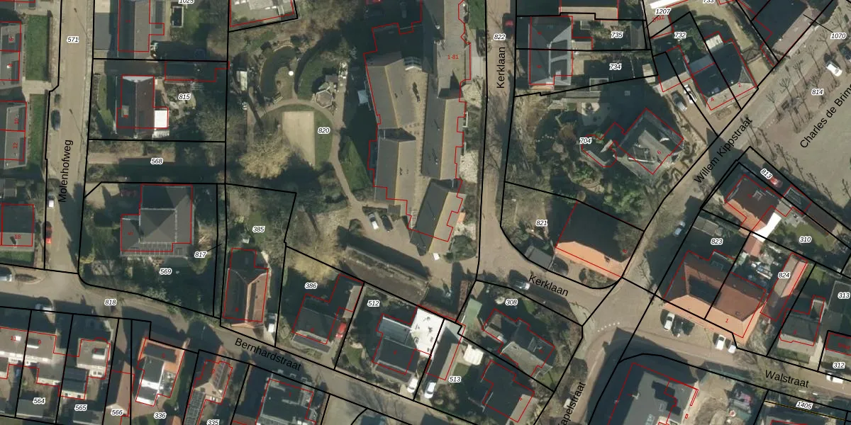 Het perceel waarop Kerklaan 41 staat heeft een oppervlakte van 4771 m². Dit is een zeer groot perceel. De perceeloppervlakte wordt geregistreerd door het Kadaster. Gedetailleerde informatie over de maten van dit perceel kunt u vinden in het rapport Kadastrale kaart met maatvoering van Kerklaan 41.