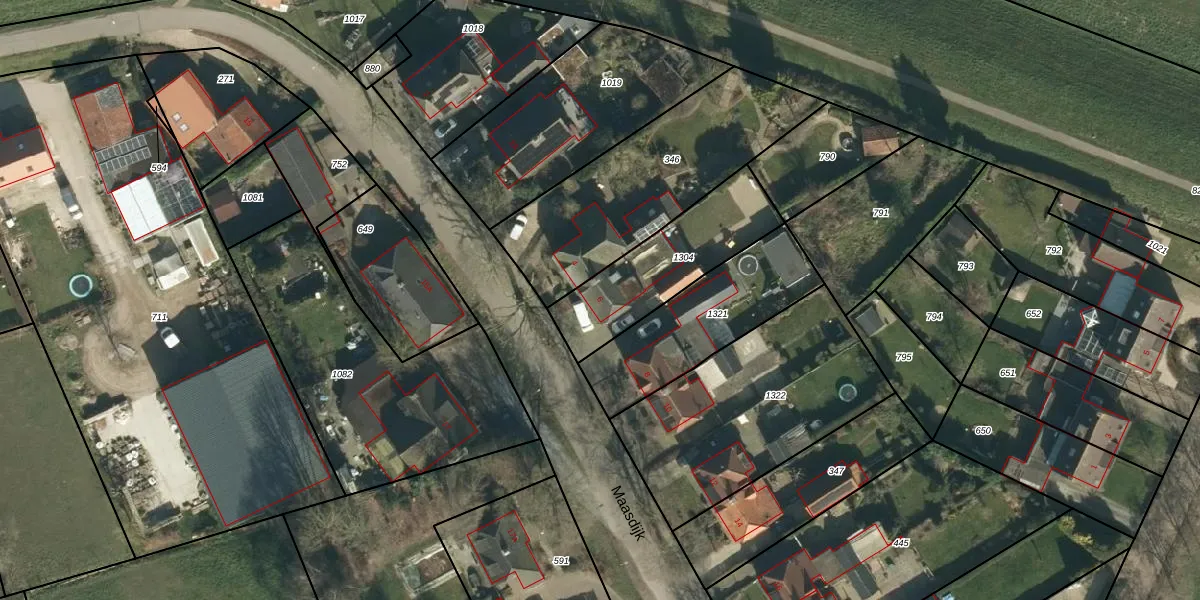 Het perceel waarop Maasdijk 6 staat heeft een oppervlakte van 441 m². Dit is een groot perceel. De perceeloppervlakte wordt geregistreerd door het Kadaster. Gedetailleerde informatie over de maten van dit perceel kunt u vinden in het rapport Kadastrale kaart met maatvoering van Maasdijk 6.