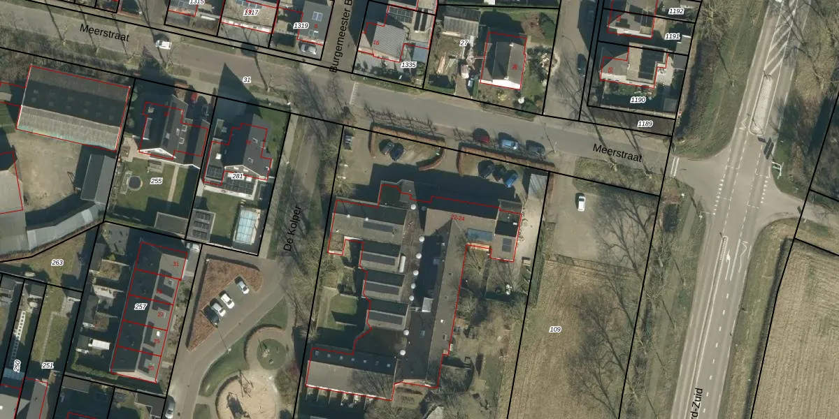 Het perceel waarop Meerstraat 22 staat heeft een oppervlakte van 4160 m². Dit is een zeer groot perceel. De perceeloppervlakte wordt geregistreerd door het Kadaster. Gedetailleerde informatie over de maten van dit perceel kunt u vinden in het rapport Kadastrale kaart met maatvoering van Meerstraat 22.
