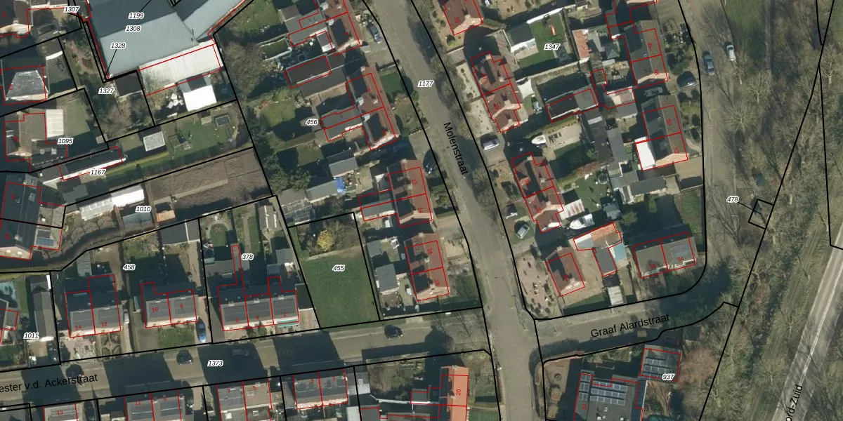Het perceel waarop Molenstraat 14 staat heeft een oppervlakte van 2853 m². Dit is een zeer groot perceel. De perceeloppervlakte wordt geregistreerd door het Kadaster. Gedetailleerde informatie over de maten van dit perceel kunt u vinden in het rapport Kadastrale kaart met maatvoering van Molenstraat 14.