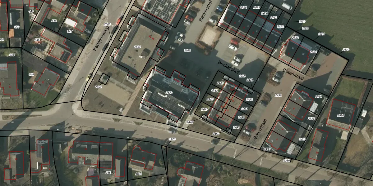 Het perceel waarop Beckershof 49 staat heeft een oppervlakte van 538 m². Dit is een groot perceel. De perceeloppervlakte wordt geregistreerd door het Kadaster. Gedetailleerde informatie over de maten van dit perceel kunt u vinden in het rapport Kadastrale kaart met maatvoering van Beckershof 49.