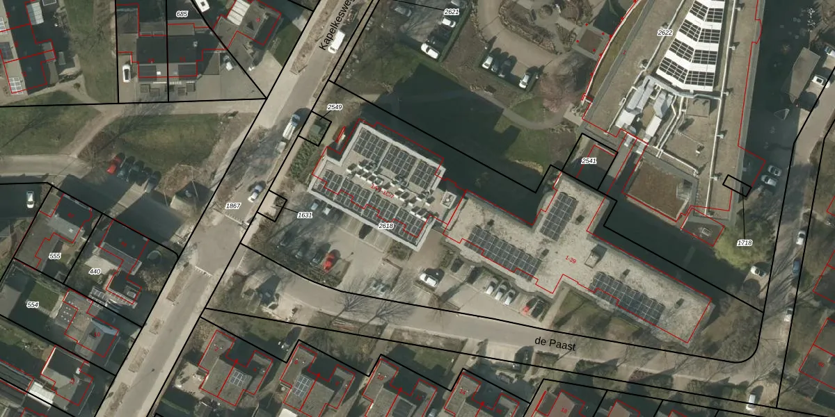 Het perceel waarop de Paast 1-B-1 staat heeft een oppervlakte van 3870 m². Dit is een zeer groot perceel. De perceeloppervlakte wordt geregistreerd door het Kadaster. Gedetailleerde informatie over de maten van dit perceel kunt u vinden in het rapport Kadastrale kaart met maatvoering van de Paast 1-B-1.