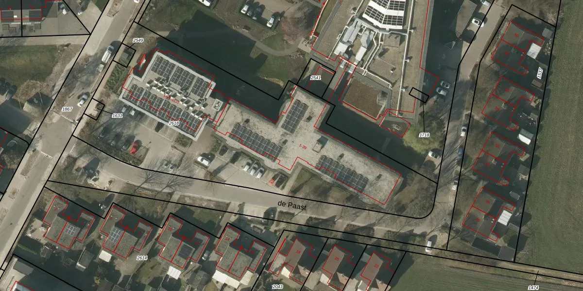 Het perceel waarop de Paast 15 staat heeft een oppervlakte van 3870 m². Dit is een zeer groot perceel. De perceeloppervlakte wordt geregistreerd door het Kadaster. Gedetailleerde informatie over de maten van dit perceel kunt u vinden in het rapport Kadastrale kaart met maatvoering van de Paast 15.