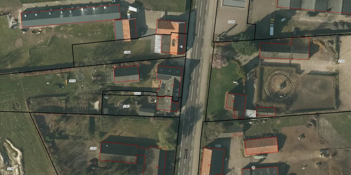 Het perceel waarop Donk 62 staat heeft een oppervlakte van 2780 m². Dit is een zeer groot perceel. De perceeloppervlakte wordt geregistreerd door het Kadaster. Gedetailleerde informatie over de maten van dit perceel kunt u vinden in het rapport Kadastrale kaart met maatvoering van Donk 62.