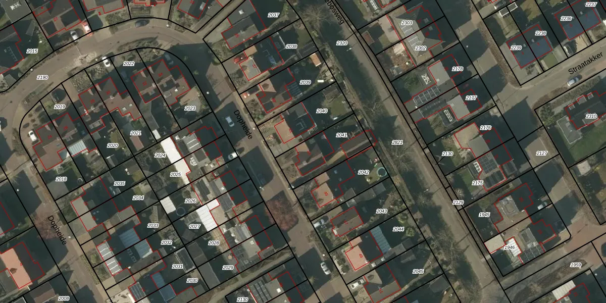 Het perceel waarop Dopheide 43 staat heeft een oppervlakte van 361 m². Dit is een groot perceel. De perceeloppervlakte wordt geregistreerd door het Kadaster. Gedetailleerde informatie over de maten van dit perceel kunt u vinden in het rapport Kadastrale kaart met maatvoering van Dopheide 43.