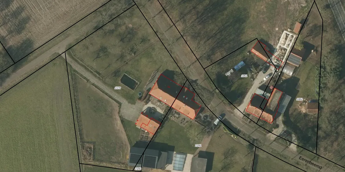 Het perceel waarop Eerenbeemd 2-A staat heeft een oppervlakte van 4380 m². Dit is een zeer groot perceel. De perceeloppervlakte wordt geregistreerd door het Kadaster. Gedetailleerde informatie over de maten van dit perceel kunt u vinden in het rapport Kadastrale kaart met maatvoering van Eerenbeemd 2-A.