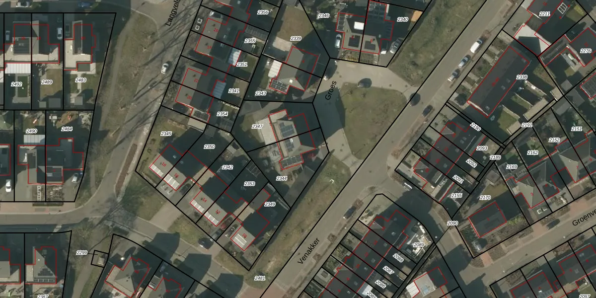 Het perceel waarop Groes 1 staat heeft een oppervlakte van 377 m². Dit is een groot perceel. De perceeloppervlakte wordt geregistreerd door het Kadaster. Gedetailleerde informatie over de maten van dit perceel kunt u vinden in het rapport Kadastrale kaart met maatvoering van Groes 1.