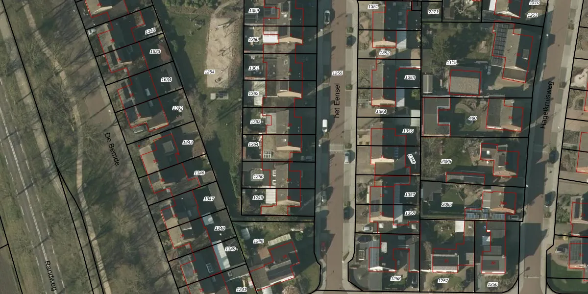 Het perceel waarop het Eensel 12 staat heeft een oppervlakte van 231 m². Dit is een middelgroot perceel. De perceeloppervlakte wordt geregistreerd door het Kadaster. Gedetailleerde informatie over de maten van dit perceel kunt u vinden in het rapport Kadastrale kaart met maatvoering van het Eensel 12.