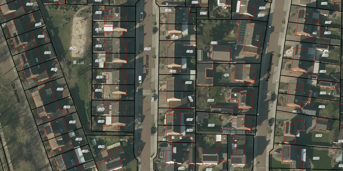 het Eensel 9 is gelegen op kadastraal perceel MEL00E1355. Deze kadastrale aanduiding is uniek en wordt gebruikt door het Kadaster om eigendomsrechten en andere zakelijke rechten vast te leggen. Het perceel maakt onderdeel uit van de kadastrale gemeente Meijel.