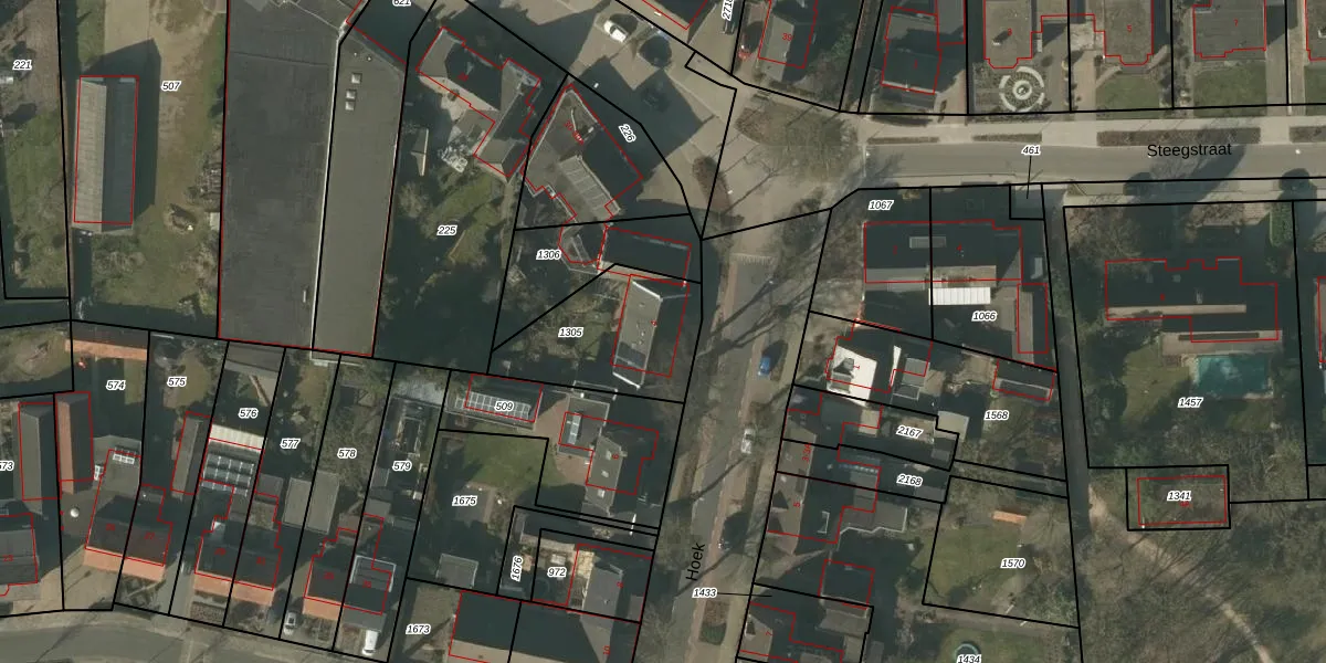 Het perceel waarop Hoek 4 staat heeft een oppervlakte van 450 m². Dit is een groot perceel. De perceeloppervlakte wordt geregistreerd door het Kadaster. Gedetailleerde informatie over de maten van dit perceel kunt u vinden in het rapport Kadastrale kaart met maatvoering van Hoek 4.