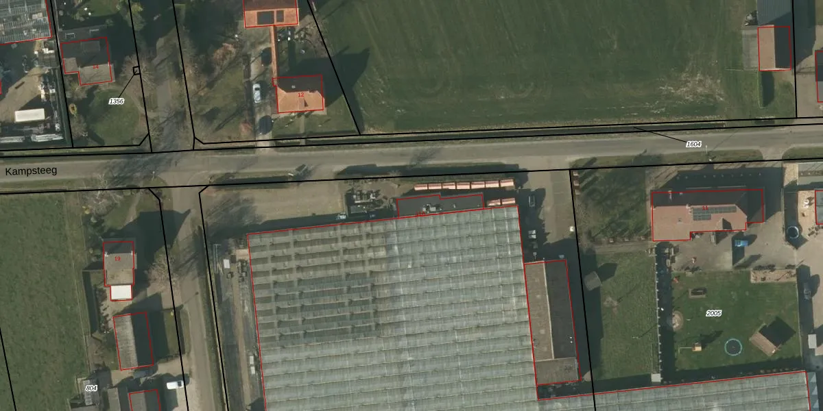 Het perceel waarop Kampsteeg 11-A staat heeft een oppervlakte van 1,3 ha. Dit is een zeer groot perceel. De perceeloppervlakte wordt geregistreerd door het Kadaster. Gedetailleerde informatie over de maten van dit perceel kunt u vinden in het rapport Kadastrale kaart met maatvoering van Kampsteeg 11-A.